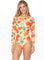 Manga larga con estructura interna, copas fijas y powernet para moldear la silueta, espalda con abertura y pitillos para amarrar. Tela con tecnología de protección UV clasificada UPF 50+. Cuenta con excelente elongación y permite un secado rápido ideal para el uso en vestidos de baño. Tela de peso medio, suave al tacto. Microfibra – Spandex.