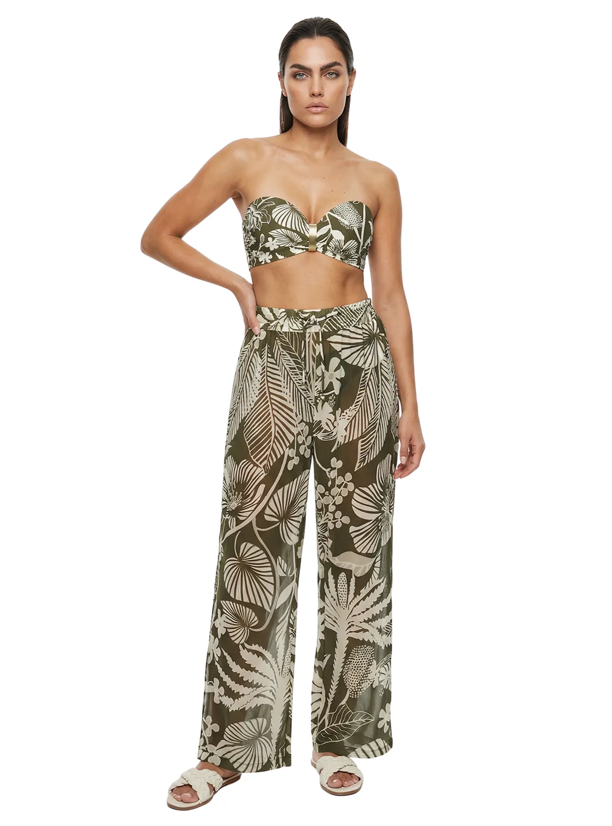 Su silueta palazzo aporta movimiento y elegancia, mientras que su diseño versátil y multiocasión permite usarlo tanto en la playa como en la ciudad.